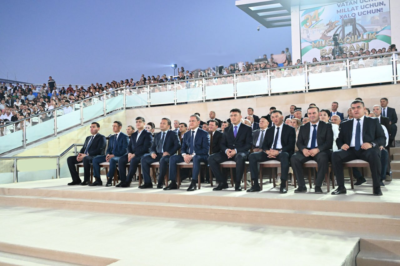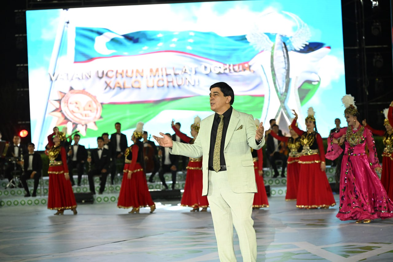 Urganch shahridagi “Avesto” bog‘ majmuasida “Vatan uchun, millat uchun, xalq uchun!” shiori ostida mamlakatimiz mustaqilligining 34-yilligiga bag‘ishlangan bayram tadbiri bo‘lib o‘tdi. Tantanada so‘zga chiqqan Xorazm viloyati hokimi Jo‘rabek Raximov voha ahlini qutlug‘ bayram bilan tabriklab, o‘tgan davr mobaynida viloyatda amalga oshirilgan keng ko‘lamli bunyodkorlik ishlari haqida to‘xtaldi, yurtimiz ravnaqi va xalqimiz baxt-saodati yo‘lida olib borilayotgan islohotlarning mazmun mohiyatini, uning samaralarini faxr bilan tilga oldi. Poytaxtimizdan tashrif buyurgan va viloyatimiz san’at ustalari ijrosidagi bayram dasturida ozod va obod yurtimiz, uning tolei baland mehnatkash xalqi , bugungi dorilamon kunlarga shukronalik avj pardalarda tarannum etildi.